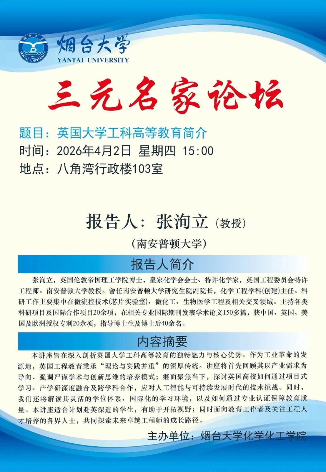 学术讲座 | 三元名家论坛——英国大学工科高等教育简介