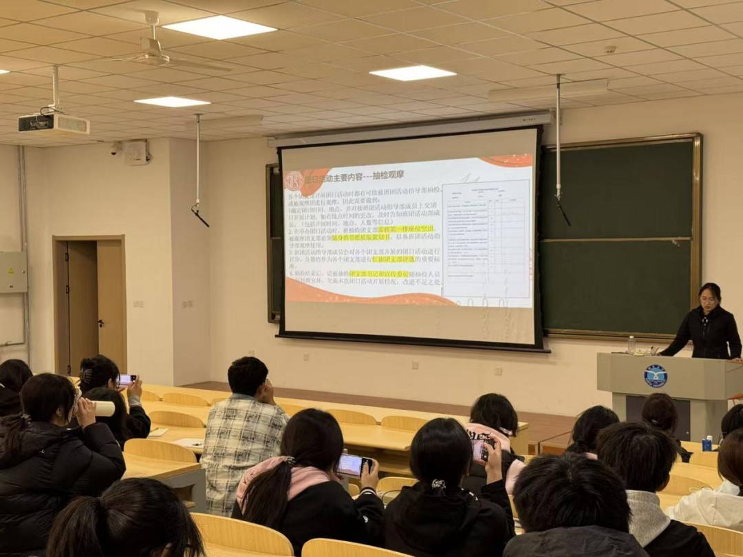 培训会上,班团活动指导部紧扣“赋能学生骨干,激活组织效能”核心目标,采用“理论讲解+实操指导+标准明确”三维模式,围绕团日活动概况、班团考核标准两大核心模块进行了深度讲解,同步结合学生干部日常工作痛点拆解关键环节,帮助各团支部快速理解并掌握执行要点。