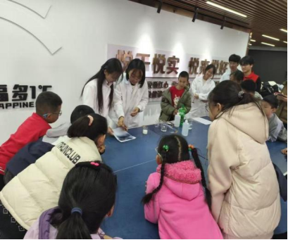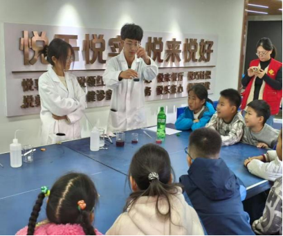 志愿服务部赴悦海社区开展化学科普志愿活动,以趣味化学实验点亮儿童科学探索热情。