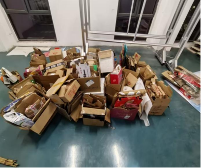 双十一购物热潮后,各宿舍内快递纸壳纷纷堆积,层层叠叠挤占空间,不仅影响宿舍的整洁,也造成资源闲置浪费。2025年11月14日晚八点半,志愿服务部的成员们准时集结,有序开展“双十一纸壳回收”活动。成员们分工明确、默契配合,逐宿舍上门耐心收集闲置纸壳,细致整理、妥善堆放,有条不紊推进回收工作。