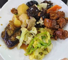 四楼自选菜窗口的快乐,是能把爱吃的全码满盘!软烂的红烧肉、吸饱味的茄子、脆嫩的时蔬,每样来一点,荤素搭配的踏实感,就是餐厅最治愈的烟火。