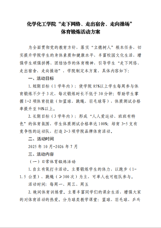 将持续深化体育育人实践,不断丰富活动内涵、优化机制保障、拓展融合路径,让体育育人在立德树人全过程中释放更大效能,助力更多化院学子在强健体魄中砥砺初心使命,在挥洒汗水中书写逐梦华章。