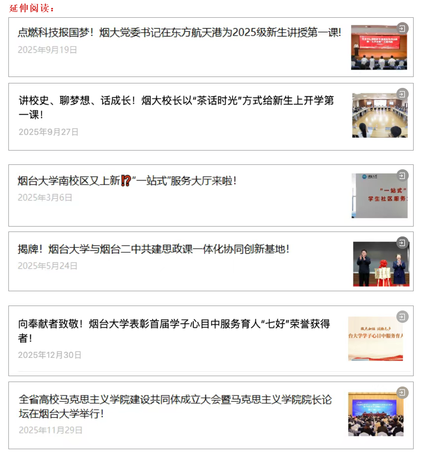 揭牌成立,为清华大学秀钟书院首个聚焦核能、海洋生态环境与海洋产业等领域的实践教学基地。举办“手拉手・成长会客厅”活动,北京大学博士与烟大学子面对面畅聊成长,在北京大学举办暑期干部培训班。学校获赠首任校长沈克琦先生藏书2000余册,先后举办北大、清华两校教师和博士进烟园活动,赓续两校援建情谊、共谋合作发展新篇。